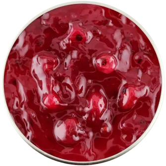 - Red currant, apple juice, water, thickeners, natural sweetener, natural coloring.