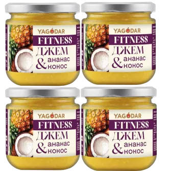 - Ананас - 48%; кокос стружка - 2%; сорбітол; вода; пектин; сік лимонний.