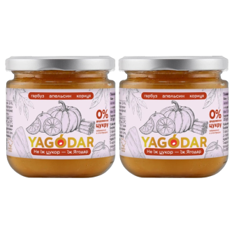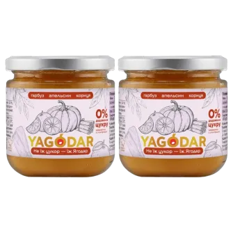 - Фруктова частина - 67% (гарбуз - 24%, гарбузове пюре - 24%, апельсин - 19%); сорбітол; апельсинова цедра; пряність натуральна - кориця; пектин; сік лимонний; вода.