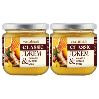 Поєднання натурального меду, свіжого лимона та ароматного імбиру - спробуйте вітамінний джем Ягодар. Солодко-пряний смак із легкою цитрусовою свіжістю чудово пасує до чаю, сирників, круасанів і домашньої випічки.