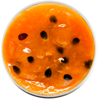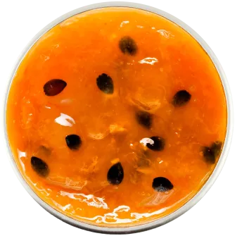 - Фруктова частина: 50% (маракуйя пюре - 30%; персик - 20%); вода; цукор; сорбіт харчовий; пектин; сік лимону концентрований; харчові волокна; стевія