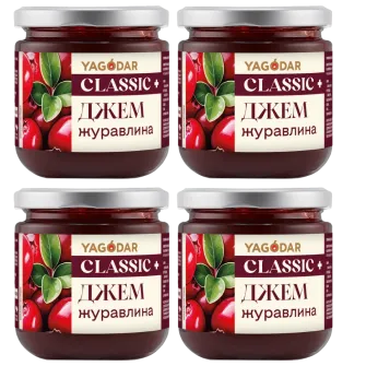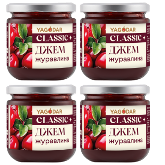 - Журавлина - 44%; цукор; сорбіт; питна вода; пектин; лимонний сік; харчові волокна; стевія.