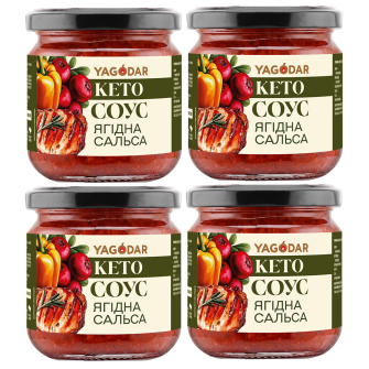 Якщо ви притримуєтесь харчування на кето дієті або просто обмежуєте вуглеводи, то знаєте, як важко знайти дійсно натуральні кето продукти без цукру та шкідливих добавок. Низьковуглеводні соуси Yagodar не містять консервантів, ароматизаторів та барвників. Лише натуральний склад, природній підсолоджувач еритритол і пектин - веганський загущувач.