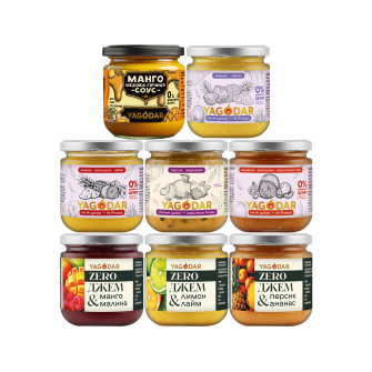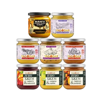 асорті, ананас, екзотичні, кисло-солодкий, кокос, маракуйя, манго, мед, гірчиця, персик