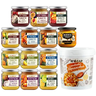Подарунковий набір: 12 тропічних джемів + соус та начинка від Ягодар, 3,2 кг