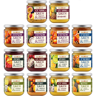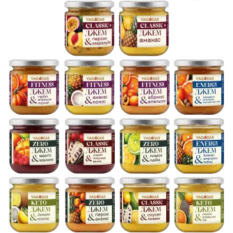 - Підсолоджувач або низький вміст цукру: у різних джемах використовуємо різні підсолоджувачі: cорбіт, стевія, гфс.