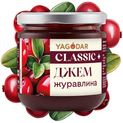 - клюквенный джем YAGODAR - с низким содержанием сахара и без консервантов, крахмала, красителей, глютена или ГМО.