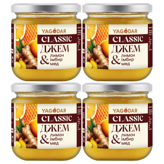 4 джема Имбирь - лимон - мед с низким содержанием сахара, 840 г Ягодар