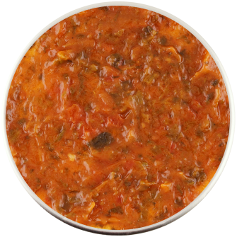 - шпинат - 29 %, томаты вяленые - 10 %, вода, подсластитель: эритрит, соль, томаты сушеные, чеснок сушеный, смесь зелени сушеной, базилик, перец черный, уксус яблочный, загуститель: пектин