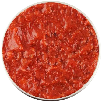 - клюква - 30 %, пюре перец болгарский - 26,9 %, пюре кислого яблока - 9,5 %, орех кешью, вода, подсластитель: эритрит, соль, чеснок сушеный, смесь зелени сушеной, перец черный, уксус яблочный, загуститель: пектин