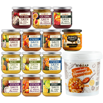 Подарочный набор: 12 тропических джемов + соус и начинка от Ягодар, 3,2 кг